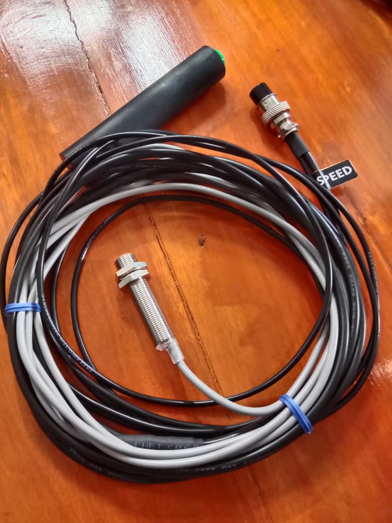 Kabel sensor kecepatan yang berfungsi untuk membaca kecepatan putaran roda atau roller dyno. Data kecepatan ini digunakan untuk perhitungan performa kendaraan seperti kecepatan aktual, akselerasi, serta sinkronisasi dengan data RPM dan AFR pada sistem dyno. Kabel dirancang dengan konektor presisi untuk memastikan pembacaan stabil dan akurat.